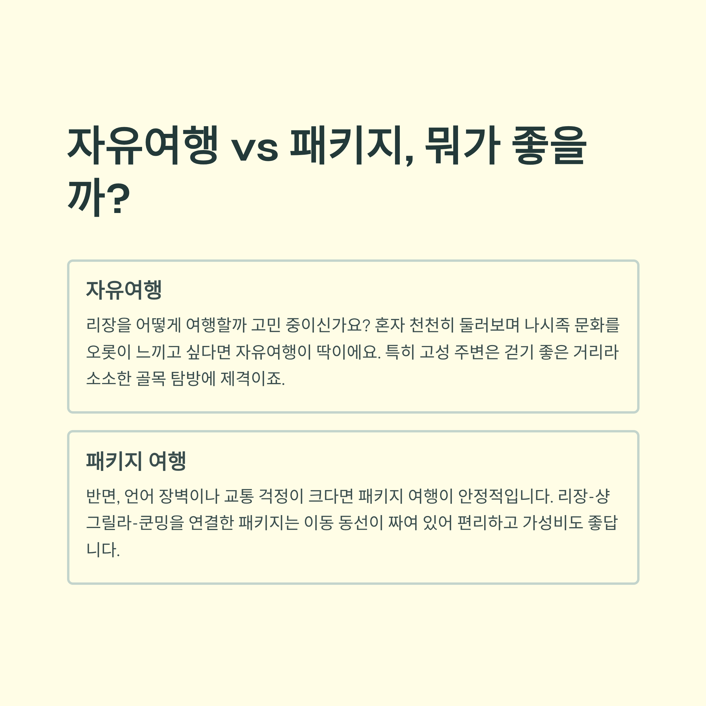 자유여행 vs 패키지, 뭐가 좋을까?